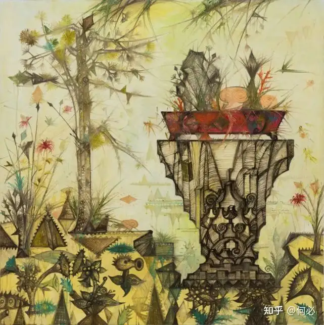 在他心中,修剪一棵树、搭造一座房屋、理解一段旋律,跟涂抹一个笔触没什么不同,都离不开松散却严谨的结构支柱,“只要我现在掌握了不变的结构就不怕。我给他们每次讲画画,都要讲最早的那个希腊神柱多利赫柱。它为什么支撑我?就因为它非自然,又贴近自然,像一个永恒的东西。金字塔也稳定,但太夸张了,太像一个建筑了,那个柱子只是建筑的一部分,但它支撑的是一个连接状。”