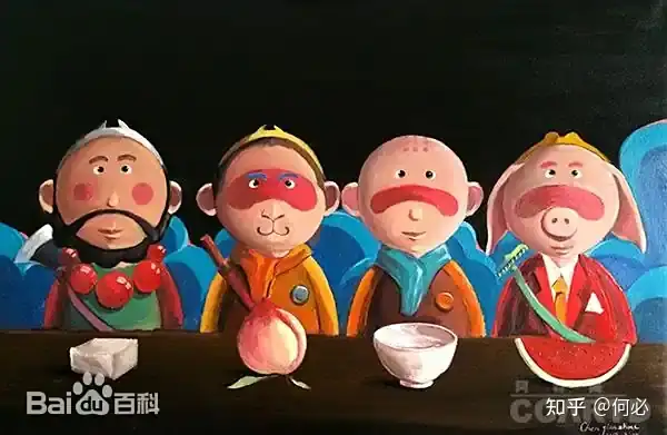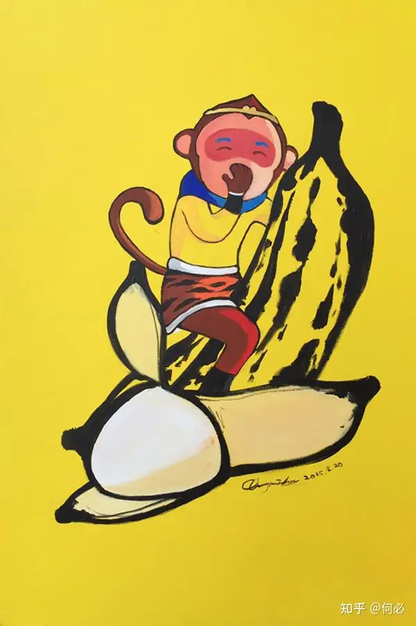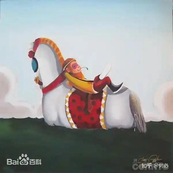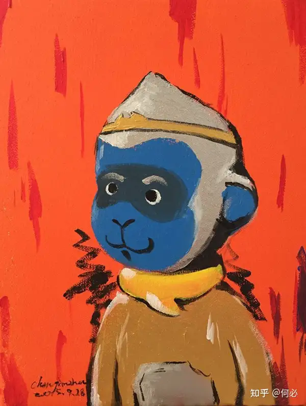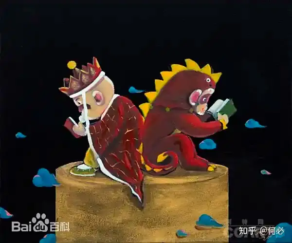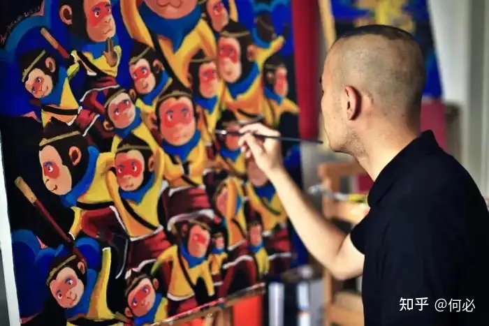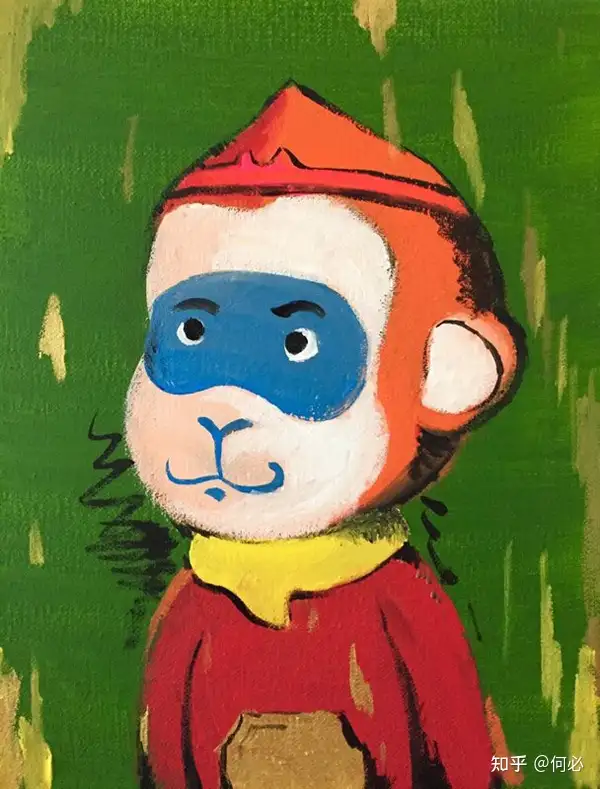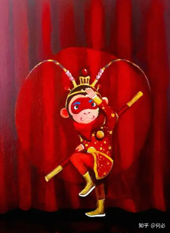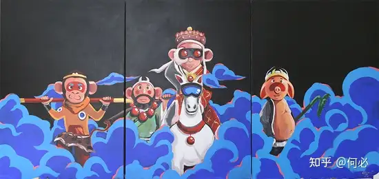 “孙悟空在我眼里是一个,神通广大、无所不能和英气逼人的一个英雄形象 ,西游记归来系列充满幽默风趣和时代感,想给给观众带去以浓厚的怡然自乐的这样的一个系列,通过色彩、线条、形体来组织一个,传达着某种欢快情感的这样的人画面,那些绘画性的要素给他带来无穷的快乐,我要将那种令人喜悦的清新感,通过画面传达给观众。”