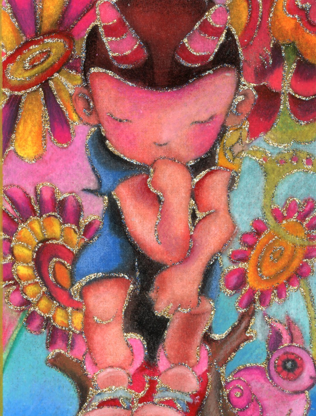 2024: 与湘西土家族傩面非遗传承艺术家庄迅联合创作架上绘画《狂喜》