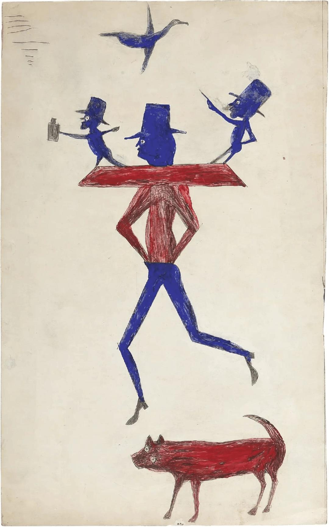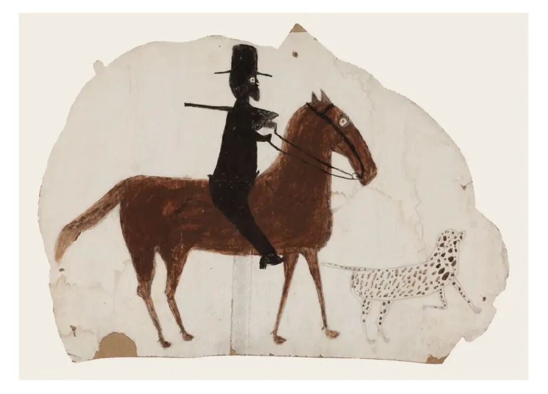 比尔・特雷勒(Bill Traylor)是一位成长于美国奴隶制阴影下的非裔艺术家。1853年出生于阿拉巴马州的奴隶家庭,即便在《解放奴隶宣言》颁布后,仍以雇农、鞋匠的身份,在种族隔离的南方社会底层度过了大半生。直到85岁高龄,他才拿起画笔,并在短短三年间高产创作,为美国民间艺术史留下了不可磨灭的印记。
