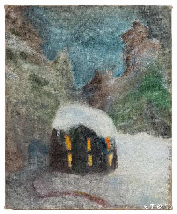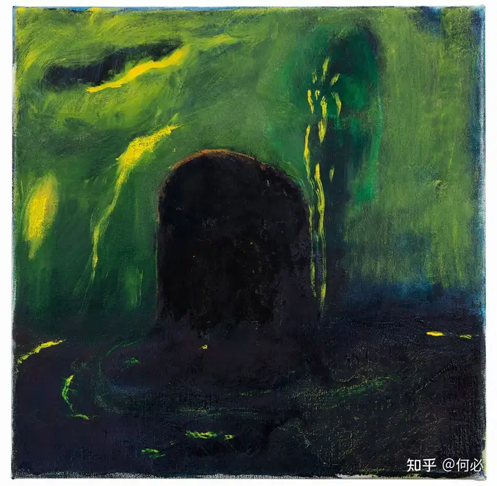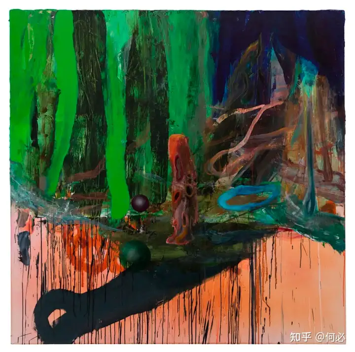 因此森林出现在他各个时期的创作中。在“黑龙江盒”时期,画面里可能是一个林场的照片记忆;“登楼已去梯”时,画面里出现的则是一些伐木工人。到了“抽象作品”时期,森林演化成了那些螺旋笔触所构造的空间。经过“抽象”阶段之后,仇晓飞开始主动地去构造森林的场景,树的形象在他的画面里开始变得清晰。