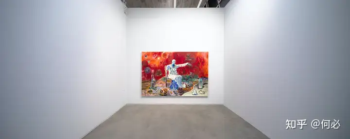 在展览第一阶段展出的一幅全新的大尺幅作品《赤》,主体部分描绘了一具模糊了相貌、年龄和性别的人物形象,这个形象来源可追溯到艺术家2009年的作品《静靛》:一位张开双臂的精神病患者,似在自我意识中“梦游”。