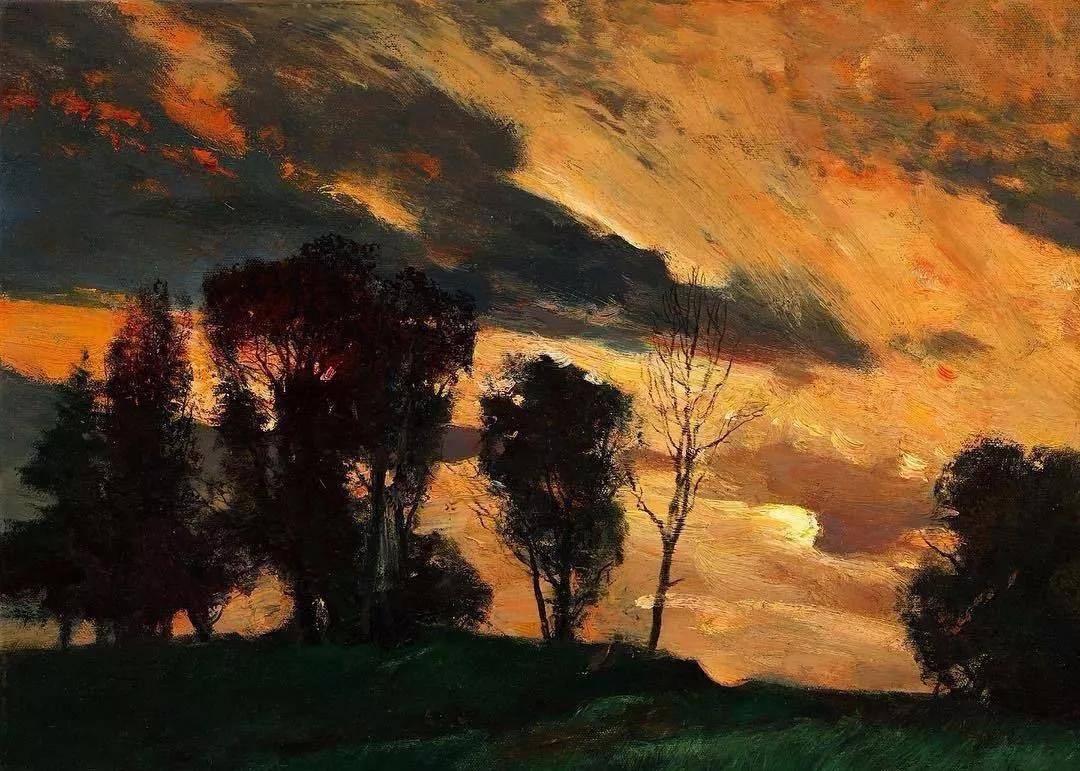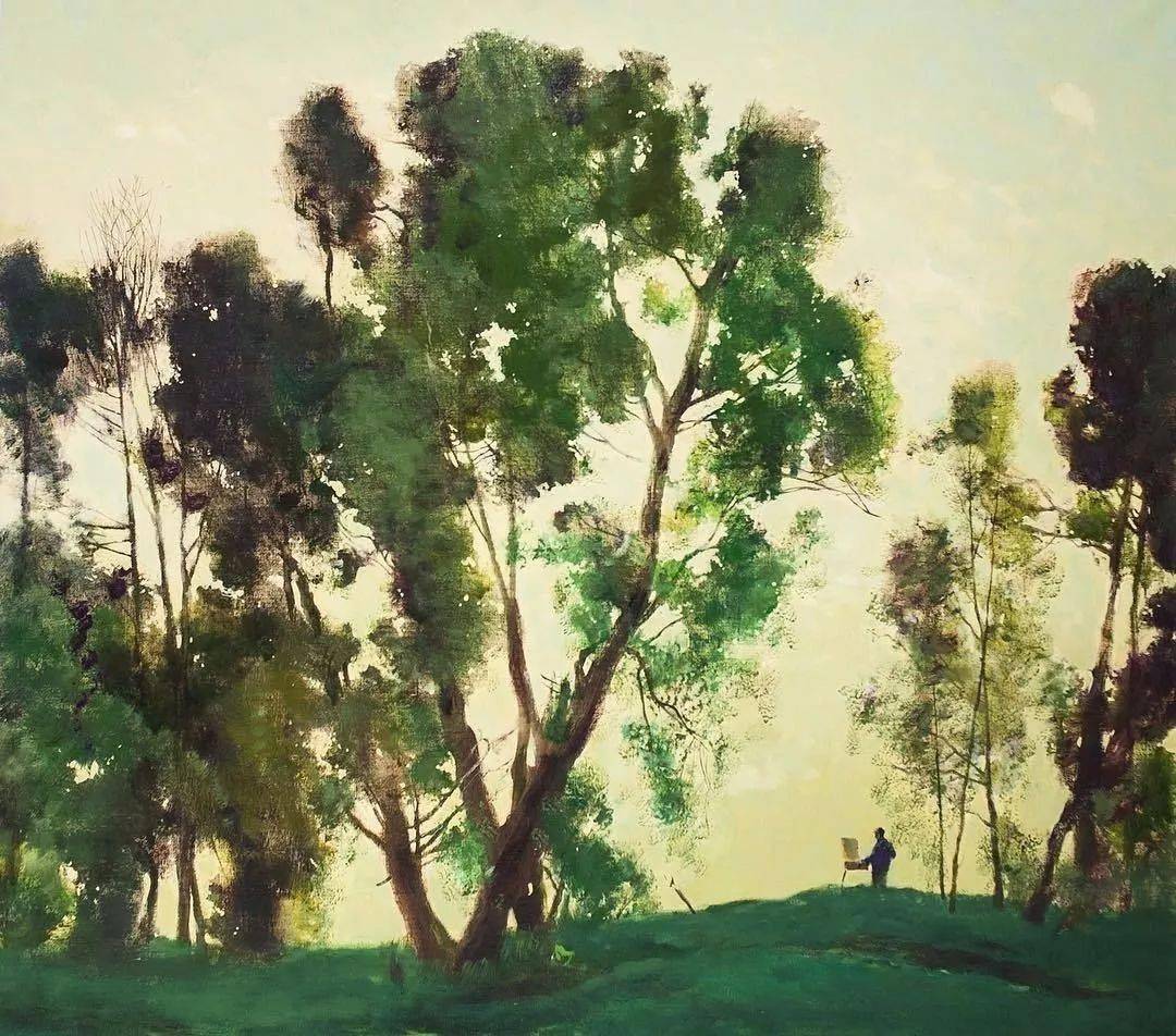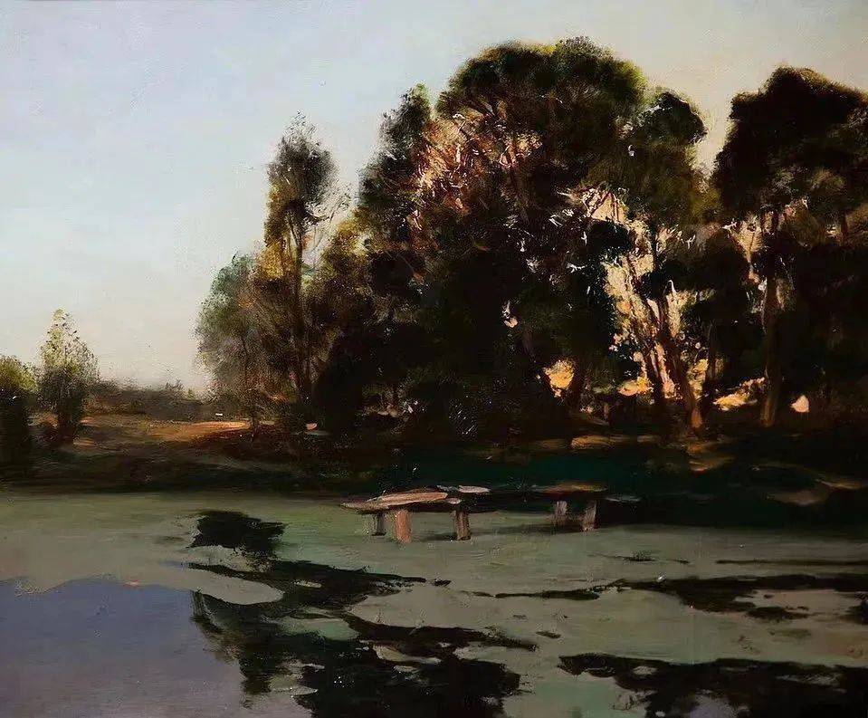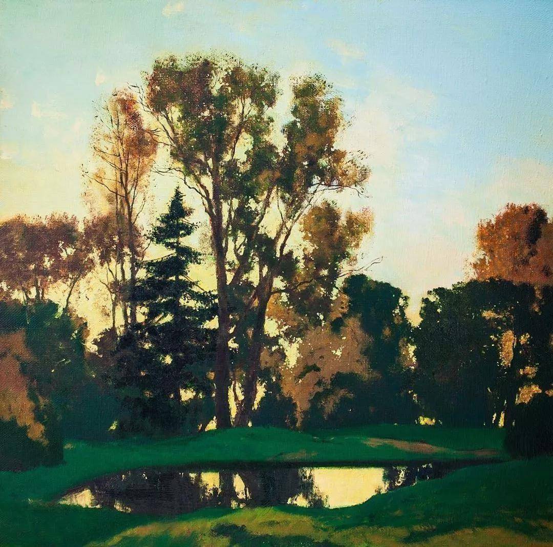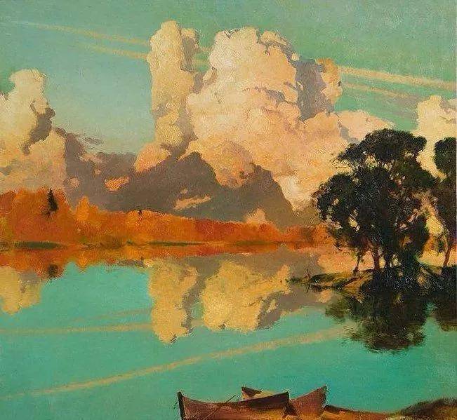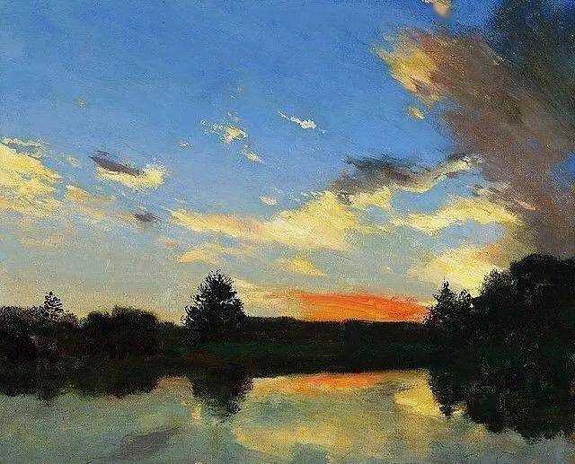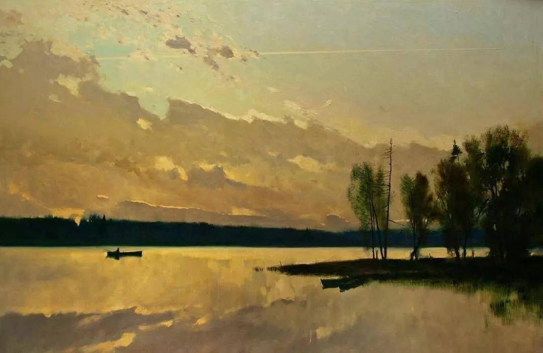 他所描绘的作品有一种梦幻般的浪漫情怀,无论是炎炎夏日的湖边,还是夕阳西下的山坡,平常的景色在画家的笔下显得格外的美妙,让人沉醉。