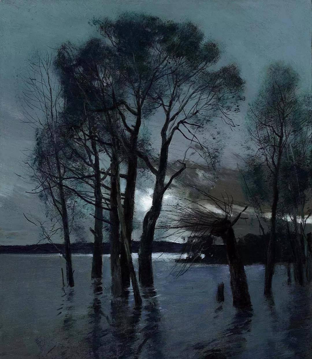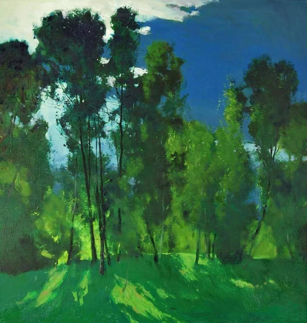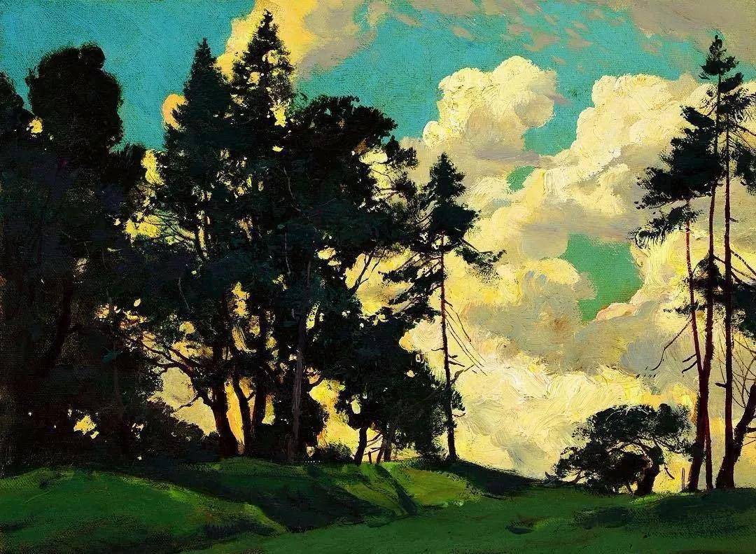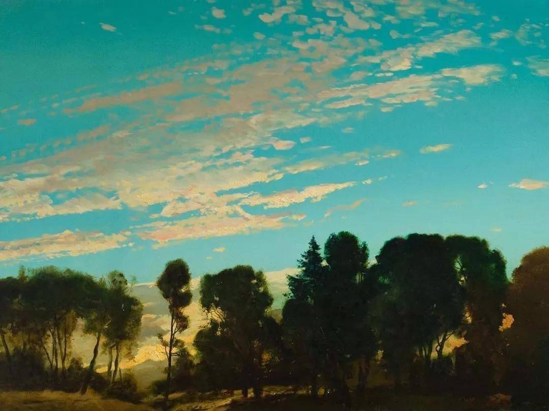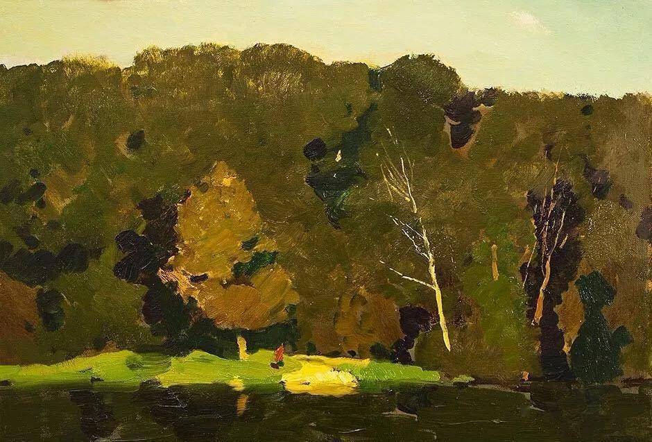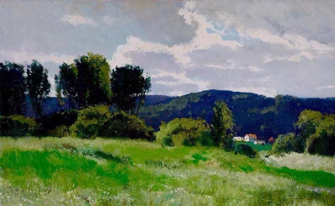 他所描绘的作品有一种梦幻般的浪漫情怀,无论是炎炎夏日的湖边,还是夕阳西下的山坡,平常的景色在画家的笔下显得格外的美妙,让人沉醉。