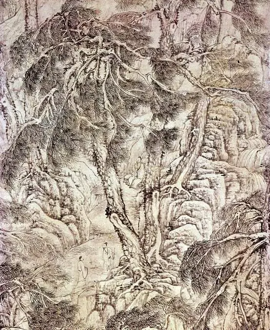 明 文伯仁《四万山水图轴》之《万壑松风》(局部)