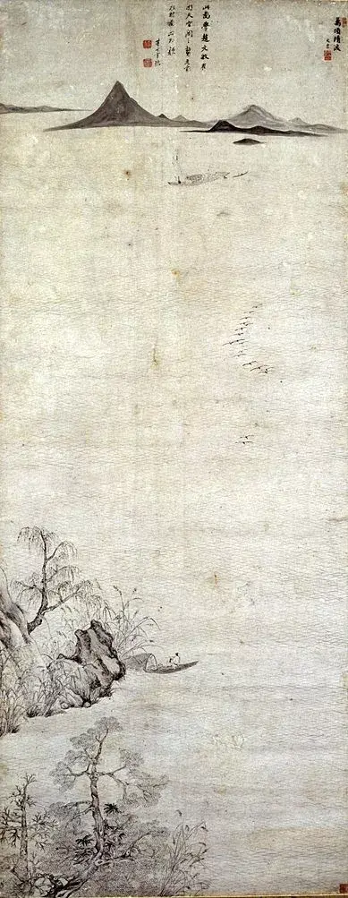 明 文伯仁《四万山水图轴》之《万顷晴波》