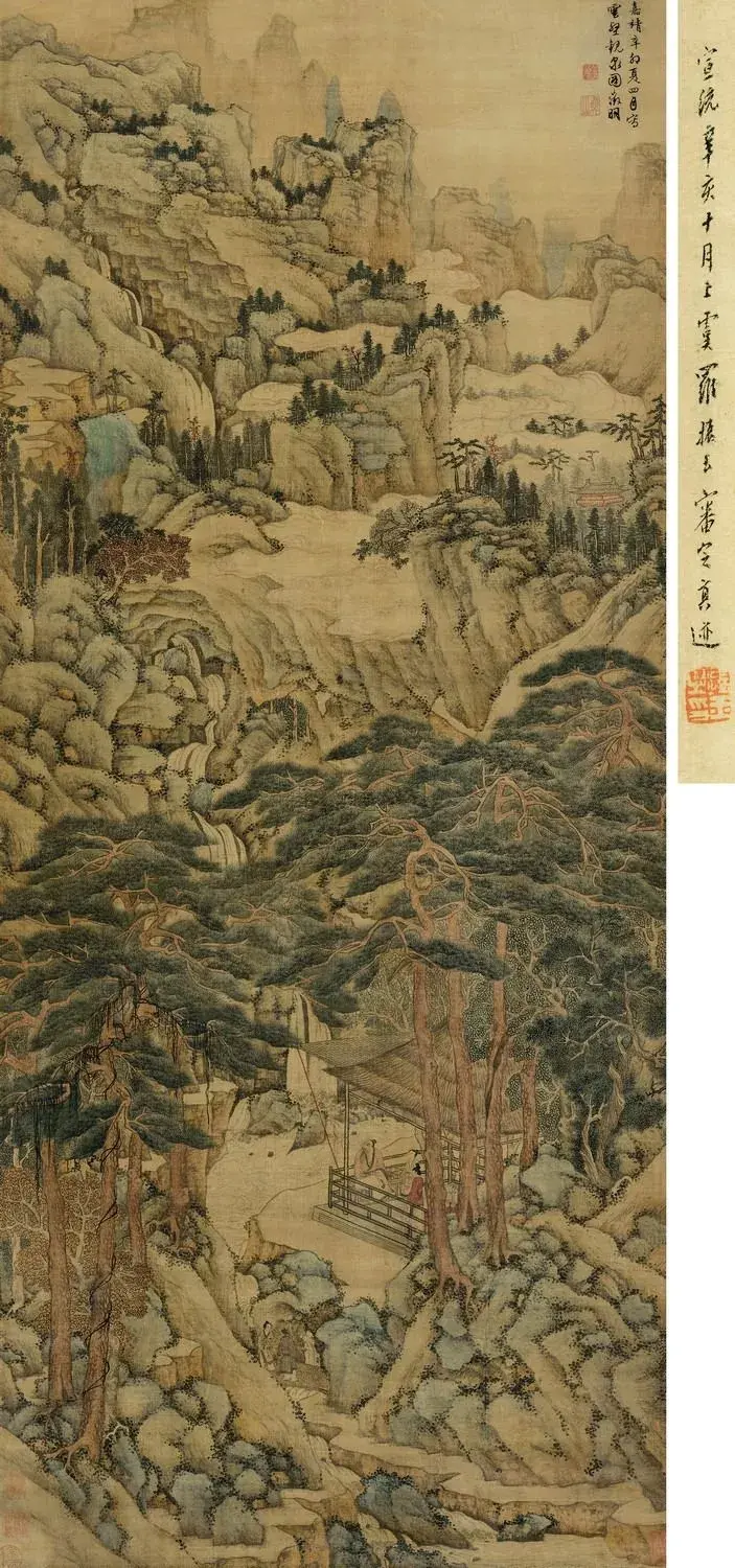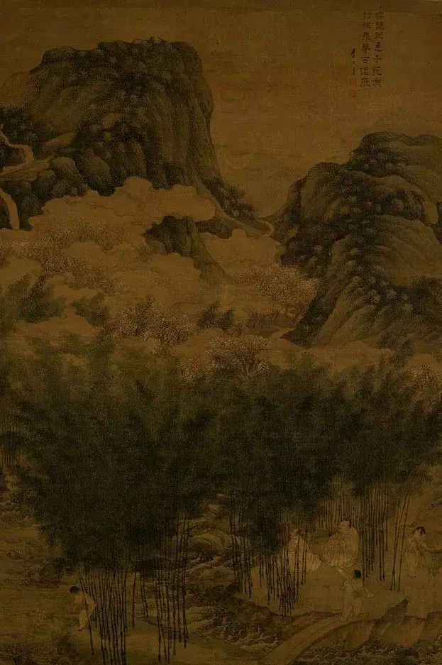 明 李士达《竹里泉声图》绢本着色,东京国立博物馆