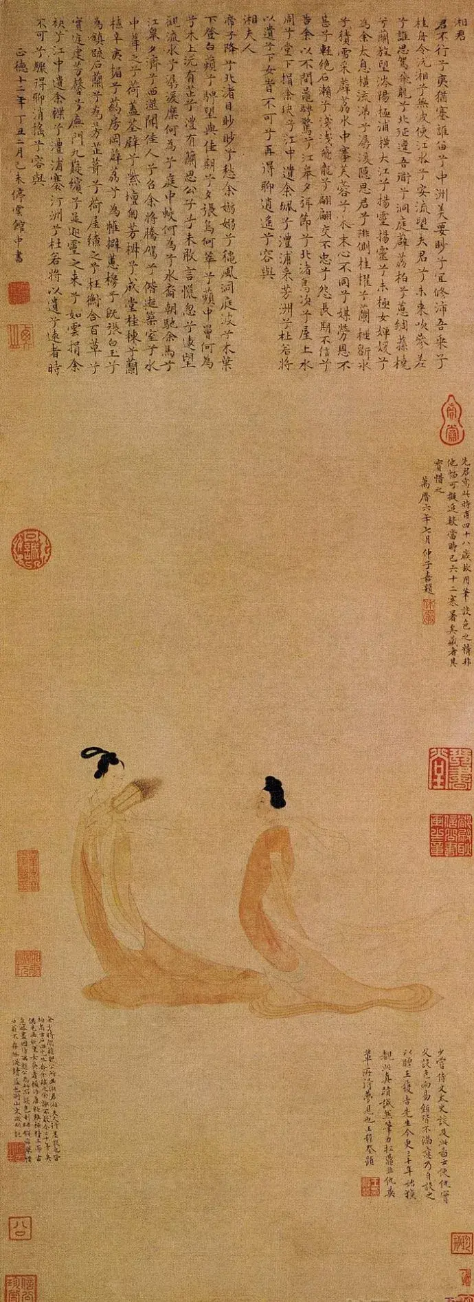 文徵明不仅擅长画山水、花卉、兰竹,亦工人物,但其人物画极为罕见,此《湘君湘夫人图》是他的人物画代表作。