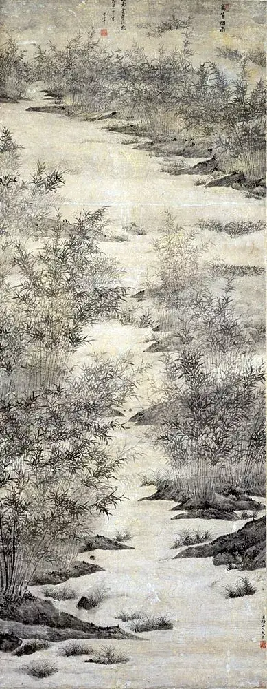 明 文伯仁《四万山水图轴》之《万竿烟雨》
