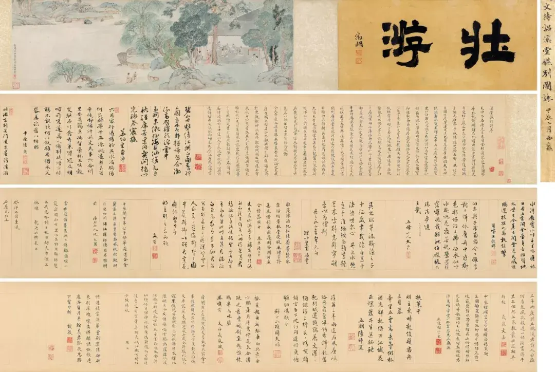 明 文徵明《兰亭修禊图卷》(局部),北京故宫博物院藏文徵明作为吴门画派继沈周之后的代表人物,对之后中国几百年画坛的影响很大,特别是文徵明的作品在民间流传不少,每每有其作品上拍也都能有个很好的成交价,尤其是2018年北京保利秋拍中,文徵明《溪堂燕别图》手卷以8797.5万元成交,刷新了文徵明作品拍卖纪录。