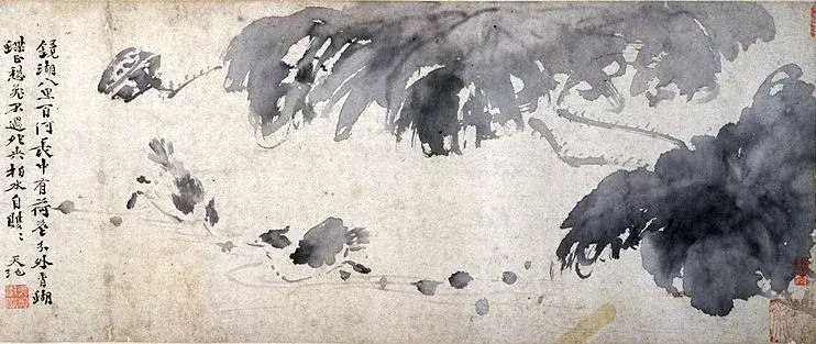 徐渭《杂花图卷》中,以淋漓酣畅的“胶墨”分别画有牡丹、石榴、荷花、梧桐、菊花、南瓜、扁豆、紫薇、紫藤、芭蕉、梅、兰、竹等共计13种花卉蔬果。