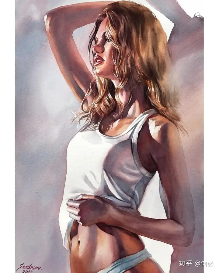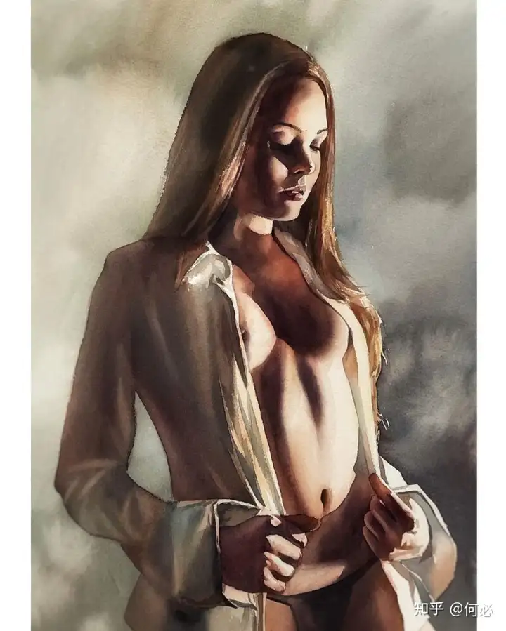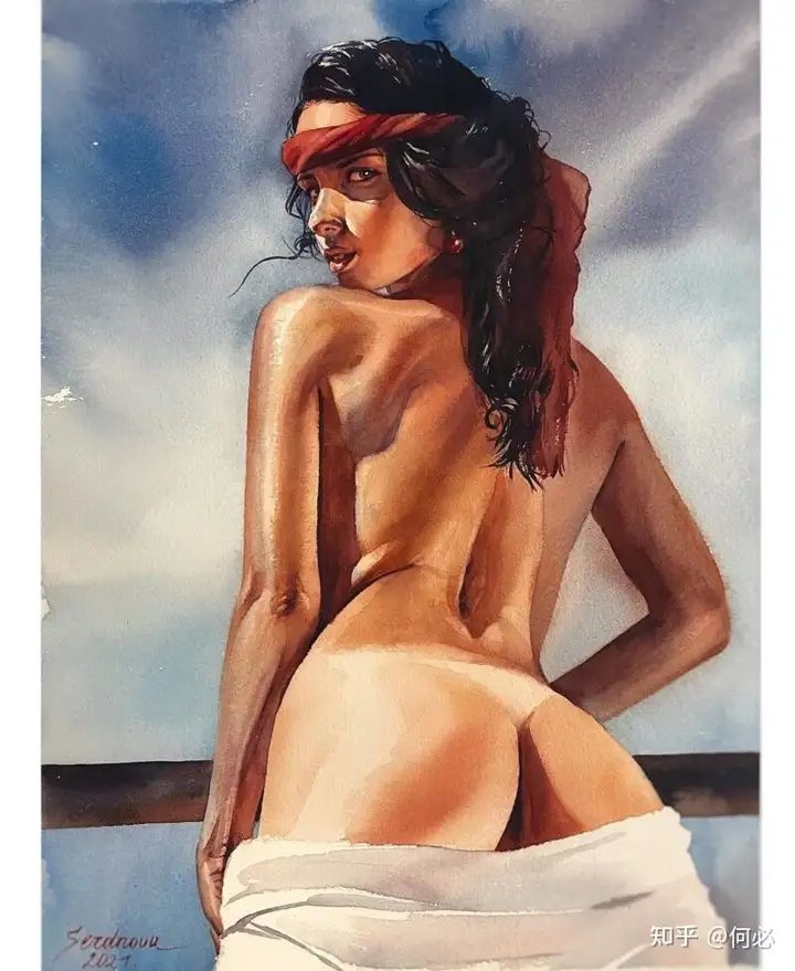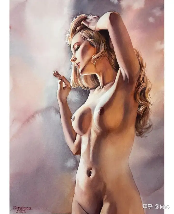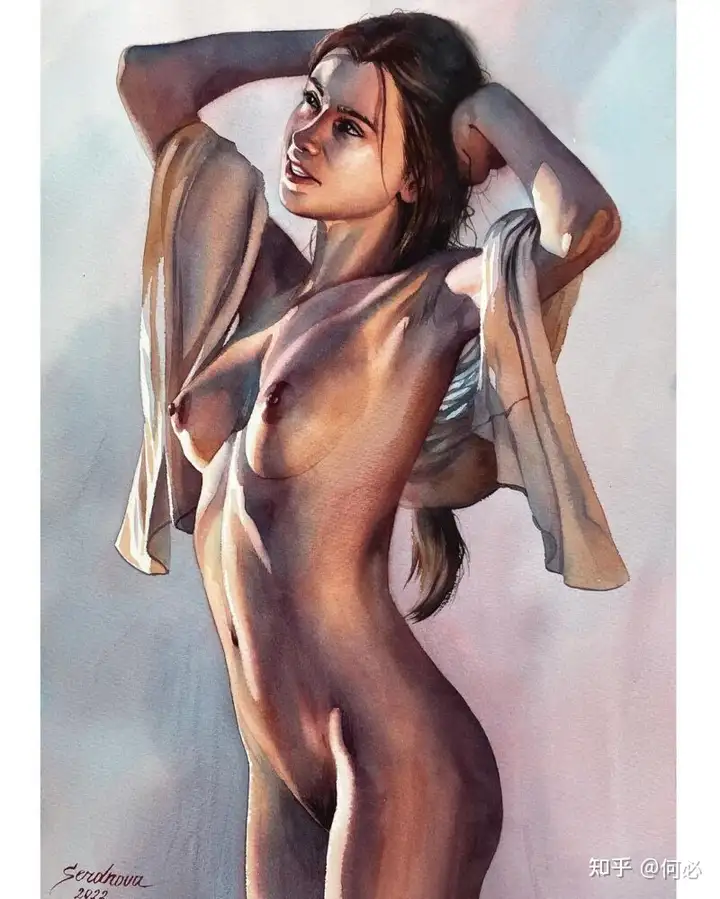 在艺术裸体的绘画和绘画中,她的目标是找到女性身体的独特形态。Serdnova Anastasija 掌握各种绘画技巧,但更喜欢水彩画。她认为,借助水彩画,可以完美地凸显女性的曲线。