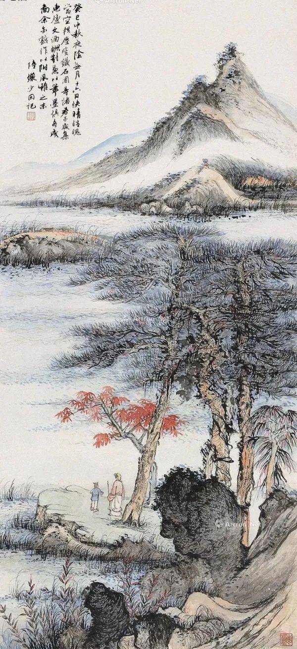 陆俨少《秋山行旅》纸本设色66x44.5cm 20世纪60年代