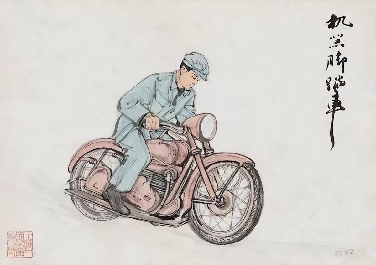 陆俨少 60年代人物画册页(机器脚踏车)上海中国画院藏
