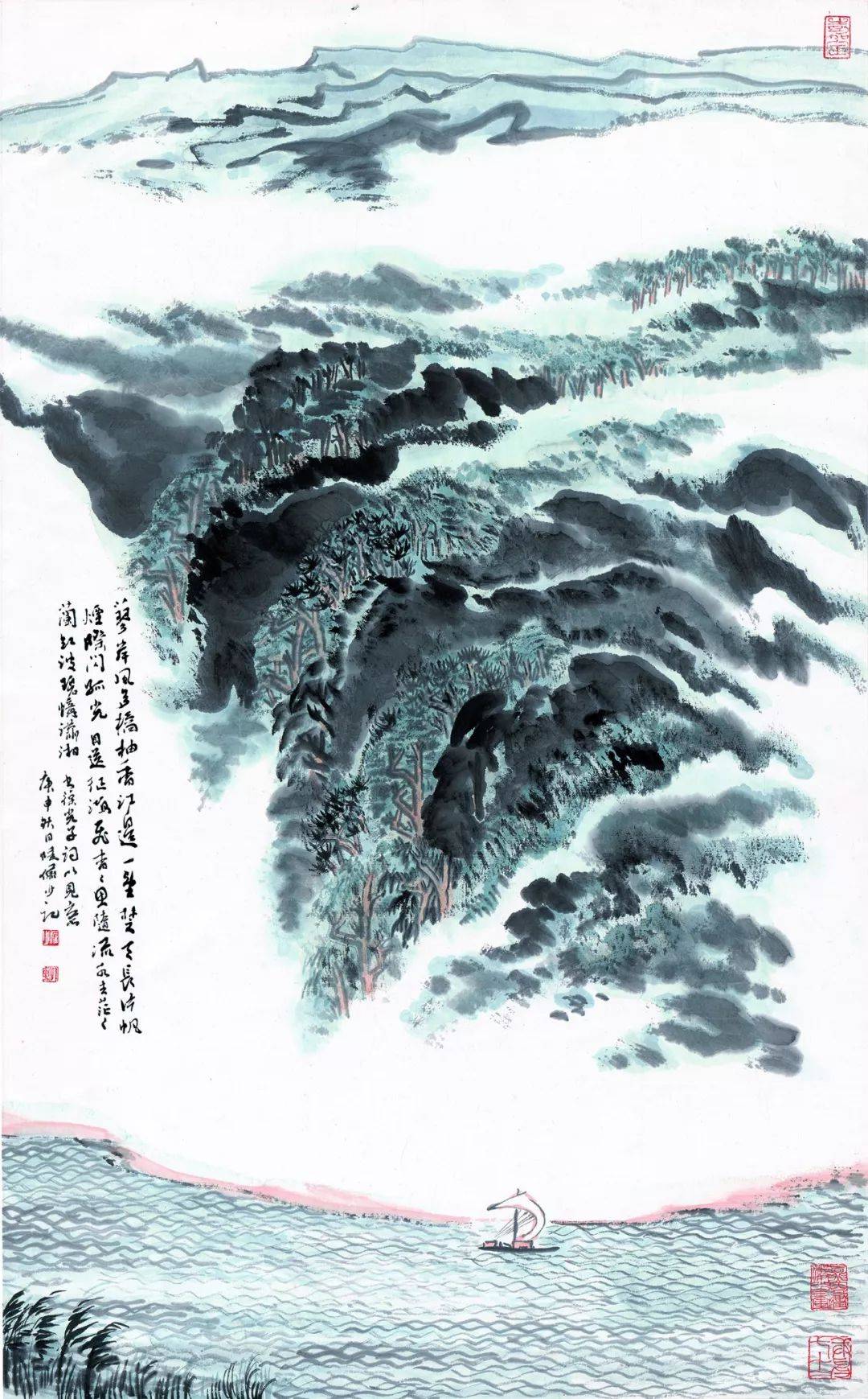 陆俨少《蓼岸风帆图》纸本设色 60x96cm 1980年