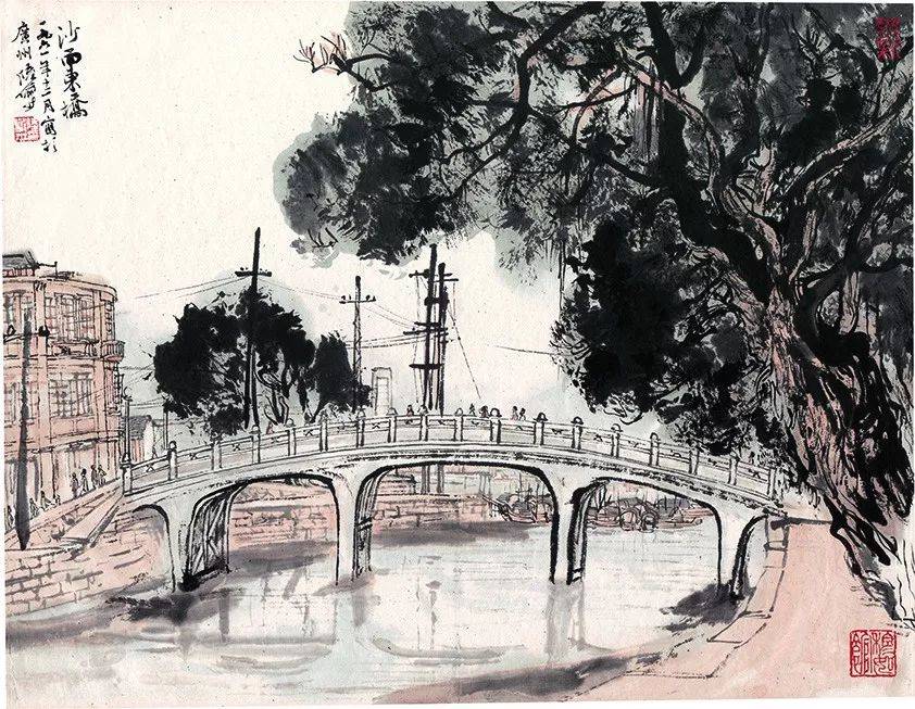 陆俨少写生作品《沙面东桥》纸本设色36x46 cm 1961年