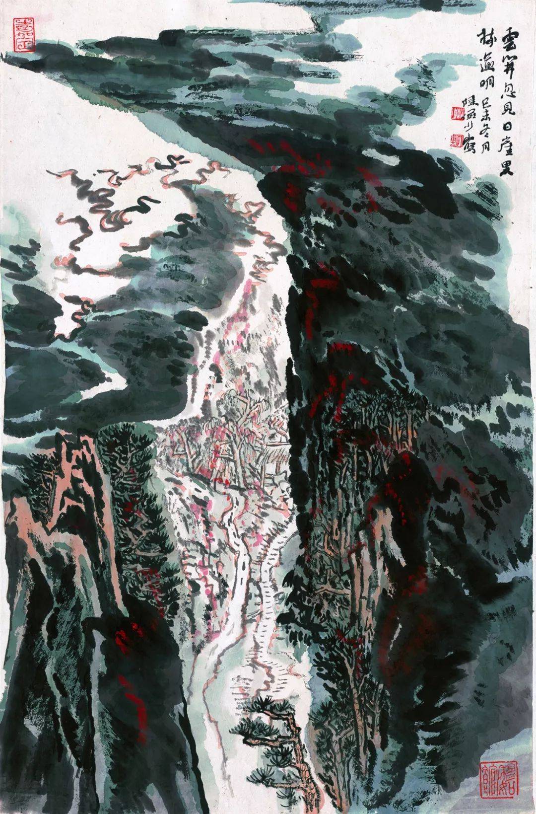 陆俨少 硃砂冲哨口 1979年 108.5x67cm 纸本水墨设色中国画 中国美术馆藏