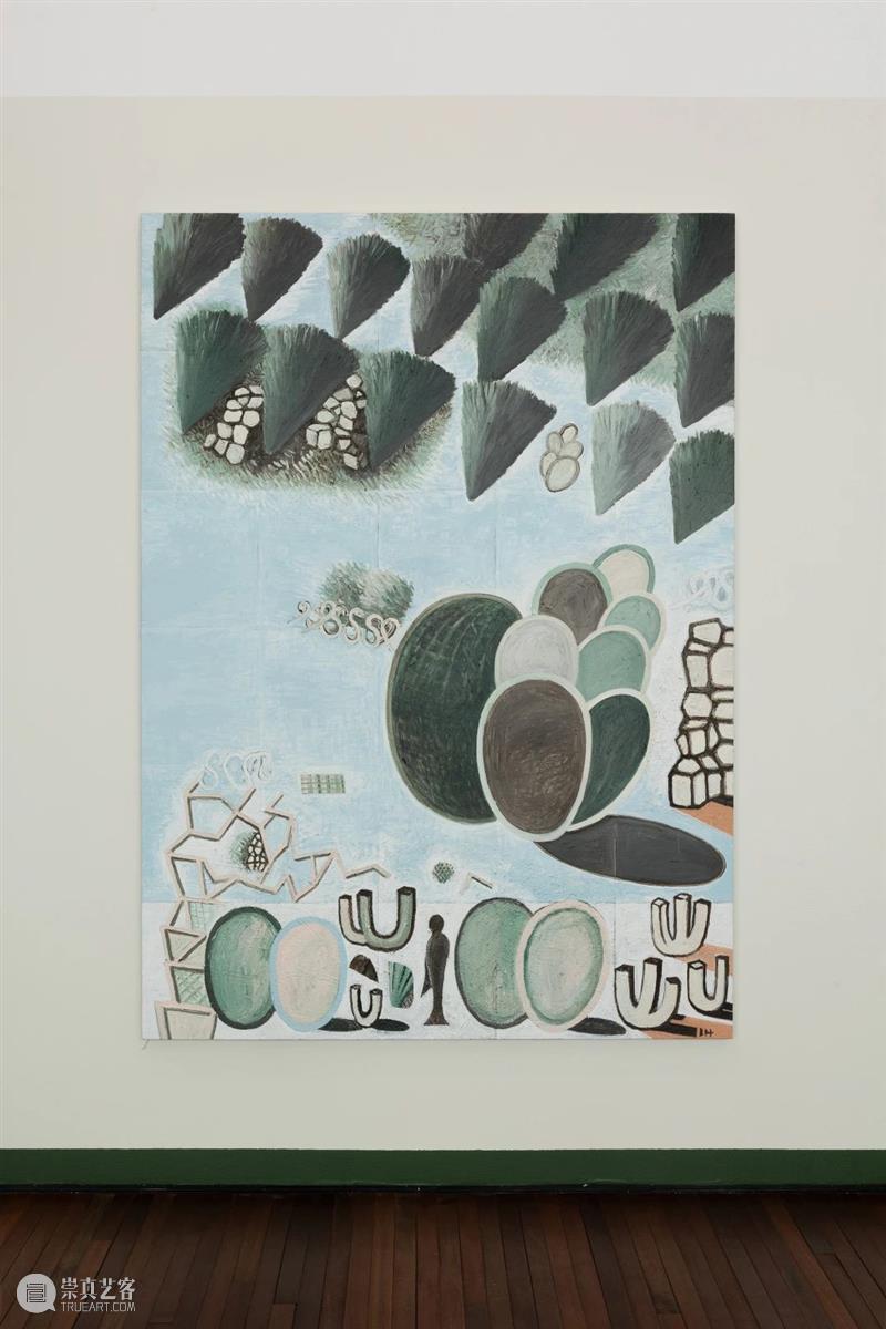 这些表现园林的作品与2017-2019年取景自然的画一同放进以“路边松林”为名的第二个展厅,“那段时间想从自然景观中提取一些新的(灵感)。这些松树是画室附近、路中间那些松树,就在你身边,熟视无睹的东西突然有一天就有吸引力了。艺术有时候最终是莫名的,这点特别有意思。没有固定的,都要固定,那也太容易了。”
