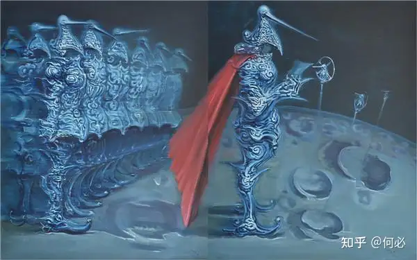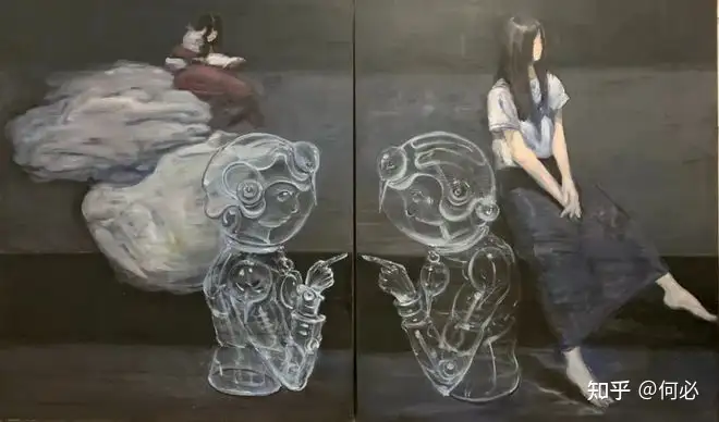 第二重:将观点转化为自我的绘画语言,以及自身潜意识深处的不同于别人的记忆。