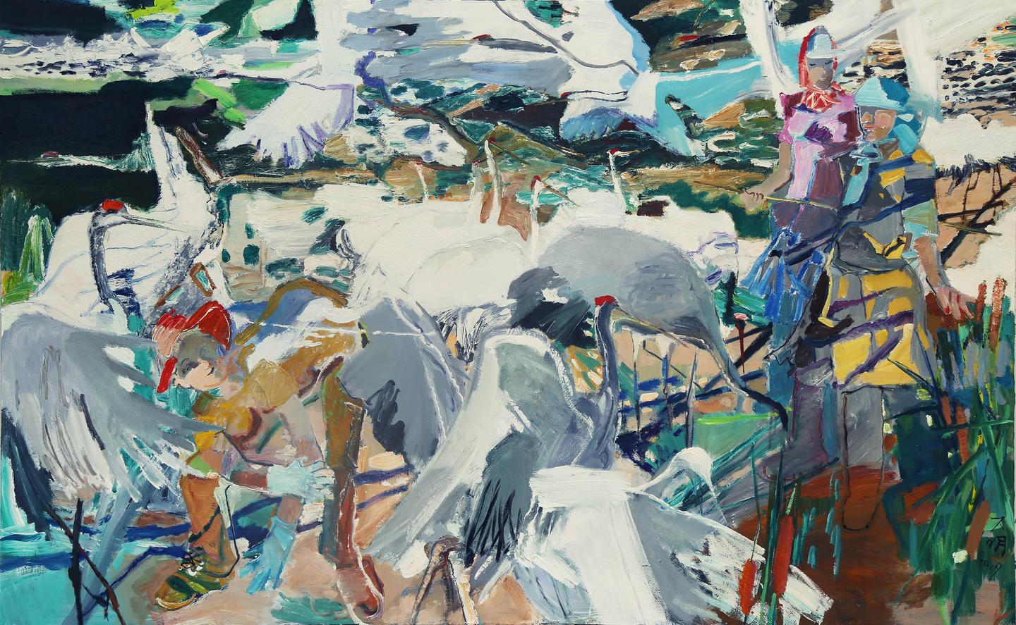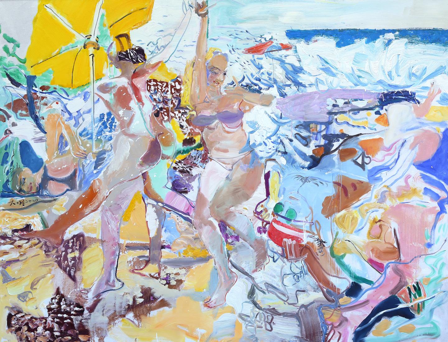 2019年,油画《向海》 《莲师的博大哈》参加“精神与图式——首届中国写意油画双年展”。