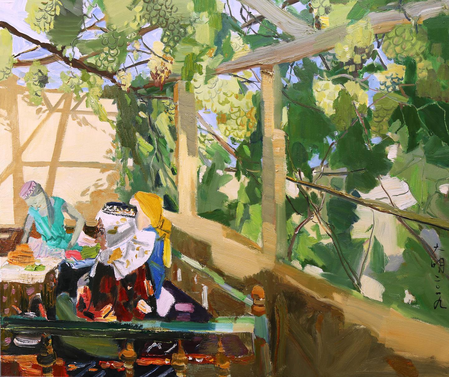 2020年,油画《吐鲁番的葡萄熟了》参加“一带一路——国际美术工程作品展”。