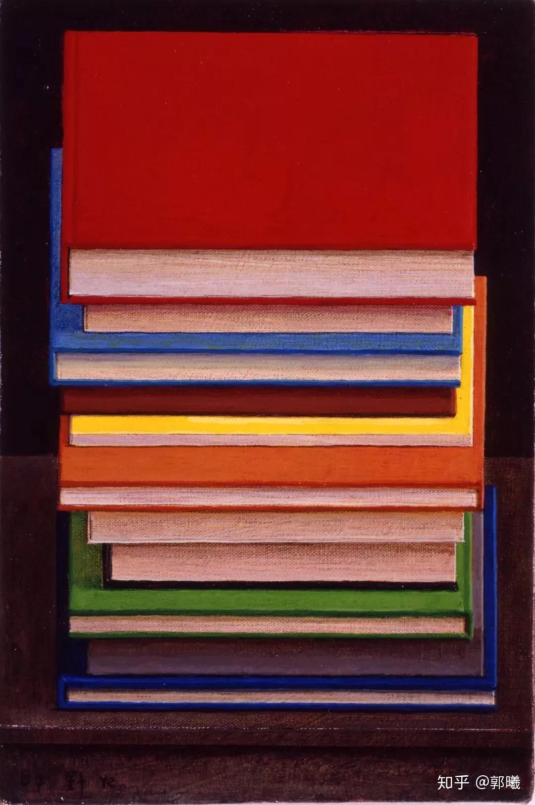 这些书以一种更写实的方式出现在画面中。刘野表示,他想画的并非书本身,他感兴趣的是画面结构中微妙的关系,如画面本与长方形书本的关系、书与书之间的关系等。